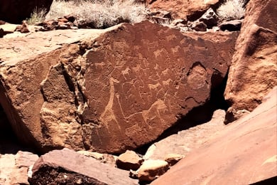 A full day today to explore Damaraland. We start the morning with a leisurely breakfast before heading through to the UNESCO World Heritage site of Twyfelfontein, the worlds largest collection of rock etchings. After an informative tour with a local guide, we can return to camp for lunch and a siesta before heading out in the afternoon for a Huab River drive, searching for the elusive desert elephant.