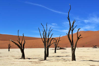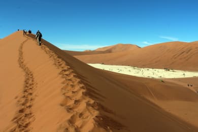 Another early start today as we head into the Sossuslei area to explore the dunes. An early breakfast at Sossusvlei Lodge, and then we enter the national park and make our way into the desert to explore, Deadvlei, Sossusvlei and enjoy endless photographic opportunities as the rising sun casts shadows over the dunes. As we travel the 60kms from Sesriem and meander along the Tsaucheb River, we learn about the animals that survive in this area, the intriguing mystery of the fairy circles of the Namib Desert, and how the dunes continue to shift depending on the winds. We have plenty of opportunity to climb the dunes, and for the energetic then we make our way directly to Deadvlei and up Big Daddy, the highest dune in the area that offers some of the most incredible views of the desert area. Returning to Sesriem mid afternoon as the day warms up, we then visit Sesriem Canyon where we can escape the heat by taking a short walk down into the canyon learning about the geological history of the area.