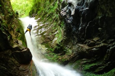 Once at the location, the guide will give you the technical material and you will first walk around 30-40 minutes to the entrance of the canyon, where you will get equipped before starting the activity. After a talk about safety and basic practice, you will start the descent with no hurries, learning all about the sport and the possibilities that the canyon has to offer. The rhythm of this activity is quite pleasant and enjoyable either for children or grown-ups, who will discover the exciting world of canyoning and will learn the essential skills for future canyoning challenges. Slide down waterfalls, leap into crystal clear pools, explore amongst rocks and canyons... canyoning is a great way to get into the most inaccessible and beautiful areas in the mountains. You will discover a natural water park, carved into stone in the middle of wilderness.