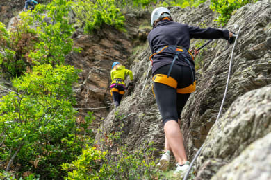 Via ferratas are specially equipped sports routes that allow you to explore places where walking would be impossible, so that people who are not used to climbing can safely ascend to areas that are difficult to access. To guarantee safety, the routes have a steel cable installation that, together with the special via ferrata harness and carabiners, protect us in case of a fall. When finished, there is the possibility of cooling off in a local pool.