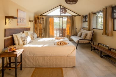 We start our first game drive at sunrise to catch the predators while they are still active, visiting many waterholes. Our second game drive mid morning takes us to the impressive Etosha Pan “great white place” where we can get out of the vehicle and experience this 4500 sq km “saline desert” before continuing our game drive to look for the Big 4. We arrive back at Halali where our guide will prepare a delicious lunch whilst we have a dip in the pool or relax by the camp waterhole. After lunch we begin our final game drive across the park towards Okaukuejo calling into some well known waterholes and leave the park prior to sunset. Our lodge tonight is located just outside the park gate. Dinner is prepared by our guide and another early night is recommended.