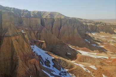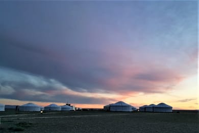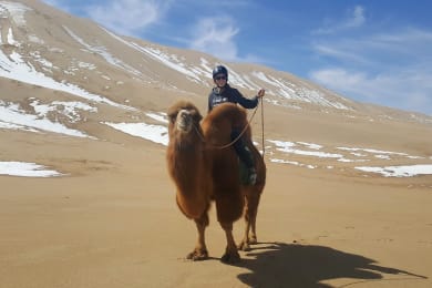 Ride camels at the famous “singing sands” and explore the world renowned Flaming Cliffs.