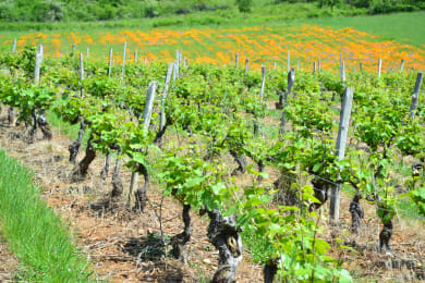 Your day's walking starts by passing through the pretty village of Fleurie before climbing to the Chapelle de la Madone which is a great viewing point above the village with amazing views all the way to Mont Blanc. You'll then follow a picturesque ridge which overlooks steep vine covered slopes peppered with farmsteads and villages. Your route climbs gradually to reach the upper edge of the Chiroubles vines. Wine tasting at your guest house with great panoramic views. 9 or 14km, +300m - +370m