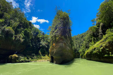 A once FARC stronghold - This beautiful part of the country now represents pure peace and pride. Explore the majestic Güejar River Canyon and enjoy a tour of waterfalls. Marvel at the Wonders of Güejar at Mesetas and San Juan de Arama. It will be a 3-day adventure listening to stories about tourism and peace working together in harmony. Feel the adrenaline rafting through a river that screams life! A river that represents peace and love to this region. Hike through trails and discover imposing waterfalls in the foothills of the Serranía de La Macarena. This is a special place and it will change you. Early snack in the hotel. You will be collected by your driver and brought to the tiny town of Mesetas. (Approximately 2 hrs 40 mins). You will be greeted by our hosts and have time to change into shorts and a light shirt. You’re going to get soaked today - so be prepared! Time for breakfast. From our host’s office - you will be transferred to the boarding point “El Limón”, to receive a technical talk about rafting on the Güejar river. From there, you will begin a wonderful journey of approximately 17 km along the river whose course will transport you to different waterfalls and rock formations that are a delight to the eye. On the tour, your guides will tell you a little about the fascinating history of this region as they guide you through the rapids of the river. Witness this river’s treasures such as a huge rock formation in the shape of “The Titanic" and wait until you reach the Valley of the Fairies! During the tour - you will have the chance to take amazing photos at some important points and you will have time to have a snack. At the end of the tour, you will arrive at an ecotourism farm to have your lunch. Here, you can take a shower if you wish. In the afternoon you will be brought back to Mesetas, have dinner and a rest in your hotel.