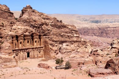 For most visitors to Jordan this is the highlight of the trip, a full day to explore Petra, one of the New Seven Wonders of the World. After breakfast, your transfer will take you to the 'back door' of Petra, where you will be able to see the city from the reverse direction to most other visitors. You will climb up the steps and hike the back door route to the Monastery, one of Petra's largest carved façades. This route also gives beautiful views over the surrounding area and a chance to explore. You will enjoy hiking inside of Petra at the Snake Monument, close to Jabal Haroun Mountain. Each person will have their own lunch box while they are enjoying the marvelous view of Petra mountains. After lunch you still have time to continue your tour through Petra, taking the Monastery steps back down to the Colonnaded Street, Theater, Street of Facades and finally the Treasury, which is the most photographed image of Petra and an awe inspiring sight. You will leave Petra via the Siq, which provides more great photo opportunities. It is a lot of walking and fairly gentle climbing during your day in Petra, but definitely worth it for the views! Make sure that your phone or camera is fully charged because you will want to take hundreds of photos – guaranteed! After visiting Petra, you will return to the hotel to freshen up and relax before the evening. There is the option of a Turkish Bath to soothe those aching muscles (extra cost.)