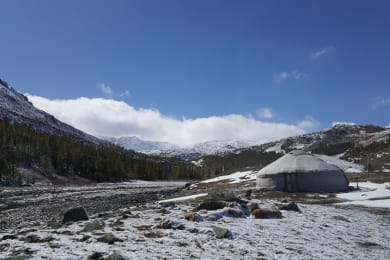 Today travel through magnificent landscapes along the river valley towards Sagsai to meet young eagle training champion Arman and his family. Receive a warm welcome and enjoy a deliciously warming cup of milk tea. Spend the afternoon with the ambitious Arman, who took on the mantle of eagle trainer to keep the tradition alive. This hardworking young man will take you to the nearby mountain to demonstrate new and traditional techniques for building a partnership with his eagle. Before going on your first expedition, complete a short training session on how to work with the eagle. Like all animals, these birds have their own individual personalities. They are alert, intelligent and very capable. Each eagle recognises its trainer's voice and appearance. Eagles will hold a grudge against anyone who mistreats them, so the trainer and their family must treat the eagle with much care, and will expect you to have the same level of respect towards the eagle. Tonight will be your first night in a Kazakh ger. The peaceful evening, cosy crackling fire, colourful decorations and warm beds after a day of fresh air lend themselves to a very good night's sleep.
