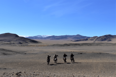 Transfer to Ulaanbaatar Airport for a flight to Western Mongolia. Fly over the foot-hills of the Altai Mountains, spotting many lakes and awe-inspiring wide open steppes. Bayan-Ulgii feels like somewhere very special and completely different from Central Mongolia. This province is the home of Mongolia’s greatest golden eagle trainers, and is the last home of the Kazakh Eagle Hunting tradition. Meet your local team and start by exploring the town of Ulgii. Here you can see a mix of cultures, Kazakh and Mongolian. Tour the local Mosque and pick up some last minute supplies in the bustling local outdoor market.