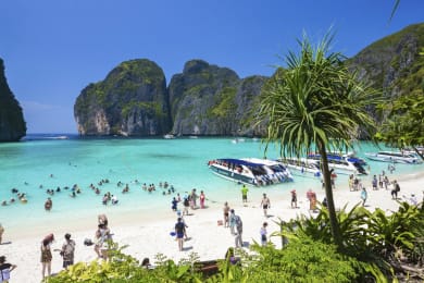 This is the most popular tour experience in Thailand and a "must" for first-time visitors to the Land of Smiles. Breathtaking limestone cliffs rise straight out of the emerald-green water. The Phi Phi's are 40 kilometers southern of Phuket in the Andaman Sea. The six islands included Phi Phi Don - home to the bohemian town of Phi Phi Islands, and Phi Phi Leh - the site of the spectacular Maya Bay which is famous for its role in the movie "The Beach". You will visit Monkey Beach before heading to Viking Cave. The Islands are laced with occasional powdery white beaches and coral reefs teeming with exotic life. They beckon you to unforgettable swimming and snorkeling in the clear tropical waters.