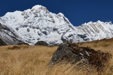 We climb gently through a river bed then over a steep trail over to the mountainside, and then a somewhat strenuous hike from Bagar to Machhapuchhre Base Camp. From the base camp, we get excellent views of the majestic Machhapuchhre along with Mt. Hiunchuli, Annapurna South, Annapurna I, Annapurna III, Gandharvachuli, and Gangapurna. The vegetation becomes scarce thereafter and the path widens as we enter the Annapurna sanctuary. From here, we get sensational views of the near-vertical south face of Annapurna towering above us. The sanctuary boasts of a dynamic view without anything impeding the 360-degree panorama. From the base camp, we again get to savor mesmerizing views of the Machhapuchhre, Annapurna South, Annapurna I, Hiunchuli, and other peaks. Overnight at Annapurna Base Camp. Meals: Breakfast, Lunch, Dinner