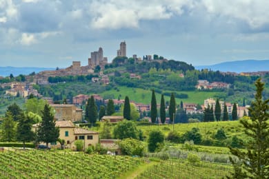 After another delightful Venetian breakfast, you'll board your Italian high-speed train. Travel from Venice to Florence through the beautiful Tuscan countryside and its seemingly endless ancient vineyards. Florence is a small city in northeastern Tuscany on the banks of the Arno river. Feast your eyes on world-class art and your tastebuds on gourmet Tuscan cuisine. Your trip manager will lead you on a 'passeggiata' of the city in a positively glorious and romantic light and visit Piazzale Michelangelo, the city's square with an incredible panoramic view of Florence. Discover Renaissance architecture, infinite religious buildings and galleries, white buildings capped with red roofs, and winding ancient streets, or wander through the pristinely manicured pathways of Boboli Gardens. After your exploration, you can choose to return to your hotel to relax or continue exploring the remarkable city tapestry cape on your own or as part of a curated exploration. In the evening, Florentine cocktails and a lavish three-course dinner will be served.