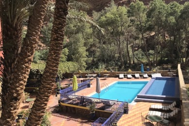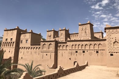 After breakfast we’ll leave Marrakech towards Ouarzazate enjoying spectacular sceneries of the high Atlas Mountains with its famous pass (Tizi N’Tichka 2260m) and many Berber villages. Along the drive there will be photo stops to admire the views. After lunch in Ouarzazate, we will visit the Taourirt Kasbah, one of the best architecture buildings of the area, it was built in the 19th century and reached the height of importance during the 1930s when El Glaoui power was at its peak, we’ll then continue to Skoura Oasis where we will visit the Amridil Kasbah. This beautiful building will transport you back in time through its history. The architecture is stunning and it has been kept up over the centuries. After that you can relax by the pool or enjoy one of our optional activities: cycling, donkey ride…