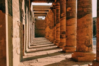 Breakfast on board Visit Edfu temple, it is one of the best-preserved shrines in Egypt. The temple was built in the Ptolemaic Kingdom between 237 and 57 BC. The inscriptions on its walls provide important information on language, myth, and religion during the Hellenistic period in Egypt, the Temple is nearly intact and a very good example of an ancient Egyptian temple. The Its archaeological significance and high state of preservation has made it a center for tourism in Egypt and a frequent stop for the many riverboats that cruise the Nile. Sail to Luxor Lunch on board Visit Karnak and Luxor temples Karnak temple cconstruction at the complex began during the reign of Senusret I in the Middle Kingdom (around 2000–1700 BC) and continued into the Ptolemaic period (305–30 BC), although most of the extant buildings date from the New Kingdom, the complex is a vast open site and includes the Karnak Open Air Museum. Luxor temple in the East bank it is a great temple complex in modern Luxor dedicated to Amun, a creator god often fused with the sun-god Ra into Amun-Ra, construction work on the temple began during the reign of Amenhotep III in the 14th century BC. Horemheb and Tutankhamun added columns, statues, and friezes, and Akhenaten had earlier obliterated his father's cartouches and installed a shrine to the Aten, However, the only major expansion effort took place under Ramses II some 100 years after the first stones were put in place Dinner and overnight Nile cruise