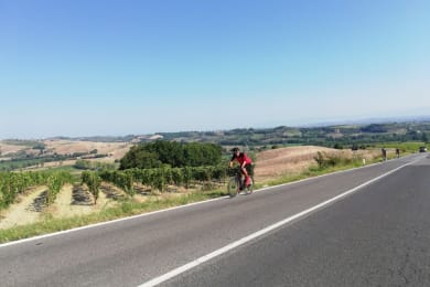 In the land of Nobile di Montepulciano and Brunello di Montalcino wines Today we ride through the Val d’Orcia, a quintessential Tuscan landscape made out of rolling hills dotted with cypress trees; its landscape is listed as a UNESCO World Heritage Site. After the marvelous Montepulciano and Pienza, a real model of Renaissance city, we'll get to the medieval village of Montalcino, the kingdom of the fine Brunello di Montalcino wine.