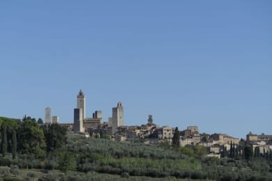 Towards the towers of medieval Manhattan From Brunello's land to the towers of San Gimignano, one of the best examples of urban architecture, created by the rich Tuscan merchants of the late Middle Ages, known as the ancient Manhattan.