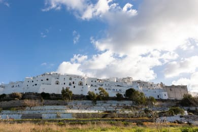 Your today cycle starts through the courtyards and arches of the old town, then continues along shores and little coves, arriving in a marvelous scenario: an expanse full of century and thousand-year old olive trees. Little by little, you will spot a white outline amid the hills: it is Ostuni, known as “the white town” because of its whitewashed houses and walls. To perfectly end the day, indulge a stroll in its old town, a sort of Mediterranean Kasbah of narrow alleys and white stairs, getting lost in the light of sunset.