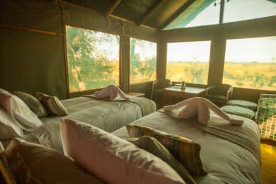 Spend the next two days at either Moremi Crossing or Gunn's Camp and enjoy one morning and one-afternoon activity of your choice. Choose from a traditional mokoro cruise, a game walk, or a motorboat cruise. A night game drive is also an option