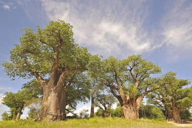 Your fourth and final destination promises to be a cultural treat. Here you would be able to enjoy bushmen interactions together with 2 daily game drives. Nxai Pan National Park Adjoining the Makgadikgadi Pans National Park on its northern border, Nxai Pans were once ancient salt lakes and today, they are oceans of grass dotted with islands of trees and small pans that fill in the rainy season creating a verdant lush Garden of Eden. Visitors can look forward to impressive natural scenery and fun activities such as: the famous Baines Baobabs, first drawn by the renowned explorer in the 1860s; excellent game viewing at sunset or sunrise on a 4WD safari and first-class bird watching opportunities. Commonly spotted animals include: lion, giraffe, kudu, springbok, impala, ostrich, jackal, bat-eared fox and the elusive nocturnal porcupine. Overnight: Nxai Pan Camp View iBrochure Nxai Pan is the only permanent camp in the Nxai Pan National Park and is located on the western edge of the fossil pan from which it takes its name, facing open grasslands. The biggest draw to the park are the zebras that migrate by the thousands to the area to drop their young – the second largest land animal migration in Southern Africa, during the summer after the rains have fallen. The pan is also known for its huge springbok population, wildebeest, elephants and large groups of giraffe. Activities include a day trip to Baines’ Baobabs, which have changed little in the 150 years since Thomas Baines immortalized them in his paintings. Another favourite is the bushman walk where guests learn how the San used to hunt, gather food and collect water. The camps' nine spacious tents all have a relaxed lounge area, indoor and outdoor showers and viewing deck which faces onto the waterhole. One room has an additional twin bedroom for family use. The camp has a plunge pool, and both bedrooms and the open-air lounge, dining area and bar are thatched to maintain a comfortable temperature year round.
