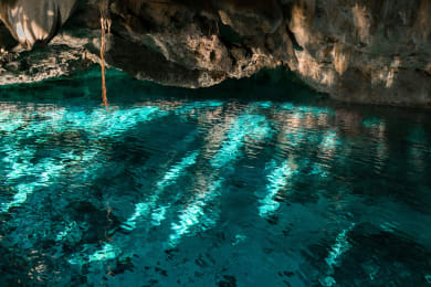 Take a plunge into the pristine underground waters to cool off. Your refreshing adventure will be enhanced by the discovery of an underground paradise lit by natural sunlight, where you can freely swim or snorkel beneath shimmering stalactites.