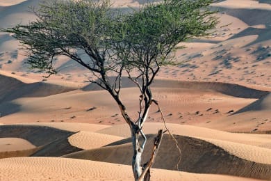 Today we will drive to Wahiba enroute visit Wadi Bani Khalid An oasis spot in the middle of the barren and dry mountains. It is one of the most beautiful wadis in Oman and its pools with clear deep blue water give you an opportunity to take a refreshing dip. {Our vehicle will report to pick the Guest by 4wd Land Cruiser to Desert (03-04 Pax in One Vehicle)} Later drive into the Wahiba Sands, a vast mass of undulating red and white sea of sand. After some exciting sand dune, visit Bedouin Family in desert. later proceeds to Hotel in Desert & upon arrival, check-in at hotel & Evening go for short camel ride 10 Minutes Overnight at Hotel