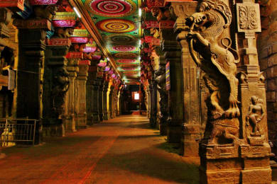 After breakfast at the hotel, proceed to visit the renowned Hindu Temple of Madurai, Meenakshi Amman Temple dedicated to Goddess Parvati, known as Meenakshi, and her consort Shiva, here named Sundareswaran. Followed by a Visit to Tirumalai Nayak Palace. This Palace is a classic fusion of Dravidian, an Islamic style. Post dinner attends the evening tradition of Meenakshi Temple known as the Night ceremony. During the ceremony palanquin of the god, Shiva would be carried in a palanquin from his shrine to his residing place. Overnight at the hotel