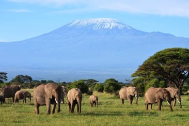 After breakfast, depart for Amboseli National Park. Situated at the foot of the majestic Mount Kilimanjaro, this park is home to a wealth of wildlife but is particularly known for its Herds of elephants. Arrive in time for Amboseli Serena. Afternoon game drive in the Park. Dinner and Overnight: Amboseli Serena Lodge About Amboseli - “Home of the African Elephant” – Crowned by Mount Kilimanjaro, Africa’s highest peak, the Amboseli National Parks is one of Kenya’s most popular parks. The name “Amboseli” comes from a Maasai word meaning “salty dust”, and it is one of the best places in Africa to view large herds of elephants up close. Nature lovers can explore five different habitats here ranging from the dried-up bed of Lake Amboseli, wetlands with sulphur springs, the savannah and woodlands.