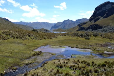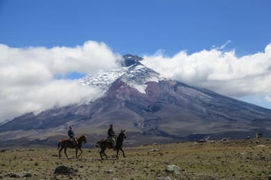After breakfast, head south to Cotopaxi National Park. Stop at Limpiopungo Lagoon for a short hike to take in the panoramic mountain views. You'll also see the El Salitre Inca Ruins, located in the park highlands. Keep an eye out for wildlife—Lake Limpiopungo is home to a variety of birds and occasionally even wild horses. In the afternoon, explore the national park on foot. Hike through beautiful páramo (typical Andean landscape) before enjoying the rest of the evening in front of the chimney in the cozy traditional hacienda.