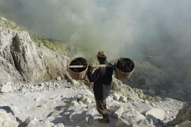 Short night as you will be departing at around 2am by 4WD for a 30min off road drive through the jungle and reaching the starting point of your climb toward the summit of Mount Ijen. Once at the top, your local guide will ask you to put your gas mask on to protect your lungs from the sulphuric gas and will choose a nice little viewing spot to watch the sunrise. You’ll enjoy a coffee whilst watching the sunrise and miners descending into the crater and re-emerging carrying up to 80 kilos of sulphur along the treacherous path. Walk down and drive back to your hotel where a well-deserved breakfast awaits. Enjoy your hotel facilities or rest in your room until noon. Last moments with your Javanese driver who will drive you to the harbour of Ketapang to take the ferry and reach the island of Bali.