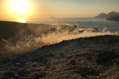 In the morning, take the hydrofoil to Vulcano (10min). Vulcano is one of the seven Aeolian Islands, famous for its black beaches and thermal springs. The hike to the crater takes around 1.5 hours from the port and on the crater’s rim you will witness the fumaroles (sulfur fume vents) and enjoy an incredible view of the island chain beginning with Lipari. After descending there is time for a mud bath at the thermal springs and a dip in the sea before returning to Lipari for overnight accommodation. Activity: 3 hours hiking, +390 - 390 mt.