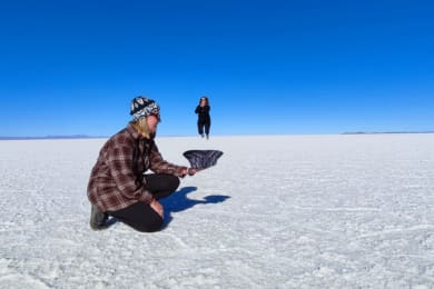 Arrive to Uyuni City at 7:00 a.m. a guide will pick you up from the bus to go to one coffee shop, there you can buy breakfast (by yourself) and wait until 9:00 a.m. for to get to the office with one guide. Start your tour off at 10:30 am with a drive out to the Uyuni Salt Flats. The first stop is the haunting "Train Graveyard’, which is found on the outskirts of Uyuni. Get to see the first locomotives in Bolivia, and learn about their history, which connected several major cities. Now, corroded over time from the strong salt winds that run through this desert area, this makes for a great photo setting. Then visit the small settlement of Colchani (salt miners’ workshops next to the salt flats), there, also find handicrafts made of salt, and textile art manufactured of llama and alpaca wool. These make excellent souvenirs to bring back home. Take photos as you cruise along the vast white expanse of salt, wade through “Ojos de Agua Salada” (salt water eyes), and visit a hotel made completely out of salt which is currently used as a museum. After a morning of exploration, Lunch will be served near “Isla Incahuasi” (Fish Island), following, have time to take a hike to the top of the island to see giant cacti, and rock formations made of petrified coral. Next, take time to organize your group for fun perspective- and proportion-distorted photos, set on the blinding white surface of the salt flats, playing around with the scene, you can be sure to take some funny, and memorable shots! Finally, head to a spacious area for the unique experience of seeing a beautiful sunset over the salt flats, spreading its dazzling colors all over the salt flats, and enjoying it with a glass of wine. Arrive in Agencha town to have dinner and night stay in the hostel. Accommodation: Agencha one room: 2 beds + Private toilets.