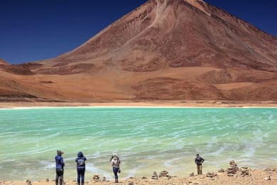 Breakfast at hotel .06:00 visit Red Lagoon, Geyser, Hot springs of Polques and Green Lagoon. Transfer to Hito Cajon (border line Chile-Bolivia) and then, transfer to Calama Airport passing by San Pedro de Atacama. (we recommend to book flight after 8:00pm. Also you have the option of extending your trip to one or two days in San Pedro de Atacama).