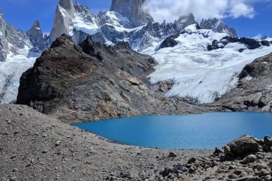 From el Chalten you will hike towards Poincenot Camping (4 hours) and then cross the White River. From there on, the trail starts ascending up to 400 meters until you reach Laguna de los Tres. The trail ends in a Moraine with an extraordinary view of the lake and De los Tres Glacier. This is the closest view you will have of the Fitz Roy Mount and the surrounding sharp mountains. Going down the moraine you can surround the lagoon until its end, where you can also see Sucia Lagoon and its hanging glaciers! Overnight @ Hosteria Senderos Meals: B, L (lunch box), D