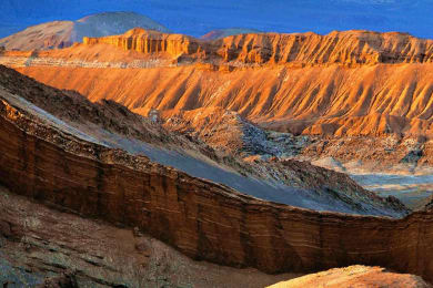 Reception at Calama Airport and transfer to your hotel in San Pedro de Atacama. Departure from San Pedro towards Llano de la Paciencia, about 15 minutes, driving south 8 km to enter the area of the old gas pipeline with roads for normal cars. The first stop is in the terrace sector where we can find the magic bus and the salt mine, then we will go to a viewpoint where we can appreciate the salt mountain range in all its splendor, with a panoramic view of the Andes. We will continue to the salt outcrop sector, where you will find formations completely of salt rocks. Finally, we can have a snack on the way to the ayllus in the sector of the carob trees with a full view of the volcanoes. Overnight @ a 4* Hotel in San Pedro de Atacama