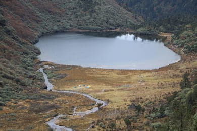 The trail follows a ridge and on a clear day, the view of the mountains and valley are simply stunning. The campsite is close to Jimilang Tsho Lake. This lake is known for its giant-sized trout. Distance: 11km, Time: 4-5 hours, Ascent: 330m, Camp Altitude: 3,870m/12,700ft.