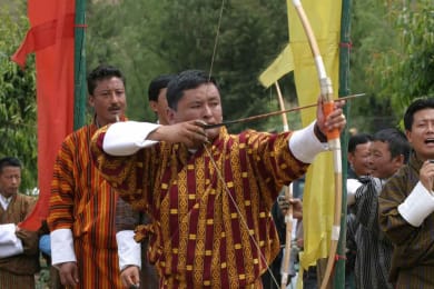 Today you'll stay in Thimphu relaxing and visitng some of the major attractions. Thimphu is the capital city of Bhutan and it is home to approximately 115,000 residents and increasing every year. This bustling little city is the main centre of commerce, religion and government in the country. It is the only capital city in the world without traffic lights and even commercial billboards. After breakfast, visit the 169ft Buddha Dordhenma Statue located at Kuensel Phodrang overlooking the Thimphu valley. From there drive to visit the 13th-century national treasure Changangkha Lhakhang built by Phajo Drukgom Zhigpo who played an important role in the early spread of Drukpa Kagyu School of Buddhism in Bhutan which is now the state religion. Visit the National Library of Bhutan, the fundamental source of Bhutanese history, religion, medicine, arts and culture. Just nearby is the National Institute of Zorig Chusum (Institute of Traditional Arts & Crafts) where 13 traditional arts & crafts of Bhutan are taught. Both Art School and National Library opens during working weekdays & on Saturdays 10am – noon. After lunch at the Folk Heritage Museum Restaurant, visit the Centenary Farmers’ Market to learn about the food culture and preference in Bhutanese society. Farmers from all over the country bring their farm produce to sell. The market opens from Friday – Sunday. From there pass by the Changlimithang Archery Range and witness the game of archery if the match is in progress. You will see archers dancing and singing each time they hit the target from a distance of 145 meters. Archery is the national sport of Bhutan.