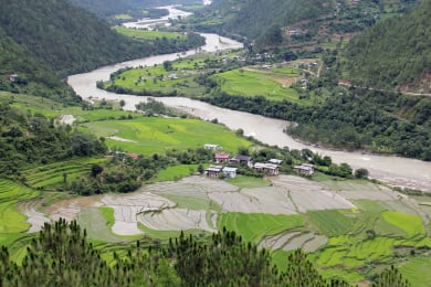 After breakfast, drive to Punakha valley. En route stop briefly at Dochula – a sacred mountain pass at an elevation of 3150m and enjoy a grand view of some of the highest mountains of Bhutan on a clear day. Good opportunity for photos! From there continue driving towards Punakha and gradually descend to a subtropical valley within an hour. Just about 11km before reaching Punakha town, visit the famous 15th-century Chimi Lhakhang popularly known among tourists as “Temple of Fertility”. A gentle walk through the terraced rice fields and traditional farmhouses painted with phalluses will give you a unique experience. Walk and explore the village. After lunch at a nearby hotel, drive to Punakha town and visit the most beautiful 17th-century Punakha Dzong which displays fine Bhutanese arts and craftsmanship which continues to influence Bhutanese architecture to this day. You will spend some time appreciating the intricate woodworks and sacred wall paintings. From there walk to Bhutan’s longest suspension bridge if interested. Distance: 74 km, Time: 3 hours, Transport: Private SUV/Minivan/Bus, Punakha Altitude: 1,200m/3,935ft. Overnight at Meri Puensum Resort or Hotel Lobesa. If you wish to stay at the farmhouse with the local family, it will be Namgay Zam Homestay (subject to availability).