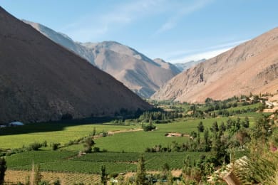 Your driver picks you up at your hotel and drives you to Valparaiso bus station. Regular bus from Valparaíso to La Serena. Travel time: about 7h30 Collect your rental car: Vehicle category G Toyota Rav 4 or similar, manual, unlimited km, CDW insurance included. Visit La Serena, a pretty little town with traditional colonial architecture. Check out the Plaza de Armas and Cathedral, have a taste of the papaya with cream from the local market La Recova, learn from native cultures at the archaeological museum and enjoy the ocean from the iconic lighthouse. You then drive along the Andes into Elqui Valley enjoying the contrast from the green vineyards to the dry mountains. Stop in the small town of Vicuña before arriving to the village of Pisco Elqui nestled in the valley of the same name. Estimated route: 100 km - 1h45