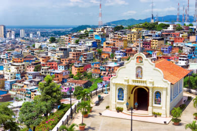 City tour in the city, we will start the tour in Seminario Park, where you can admire many of the exotic green iguanas. Passing by the neoclassical Municipal Palace and the Morisco Clock Tower, we will arrive at the Simon Bolivar Malecon, an impressive and beautiful promenade more than two kilometers long on the banks of the gentle Guayas River. Next, we will visit the historic neighborhood of Las Peñas, at the foot of the picturesque Santa Ana hill. We will also visit the General Cemetery, famous for its mausoleums and tombs made of Carrara marble by Italian artists in the first decades of the 20th century. continuamos después del almuerzo a recorrer la Aerovía es un sistema de transportación pública Aero suspendida que conecta a las ciudades de Guayaquil y Durán, en la provincia del Guayas, Ecuador. El proyecto empezó a tomar forma en el 2014, luego fue presentado por la M.I. Municipalidad de Guayaquil en el 2015 y su construcción inició en el 2019.