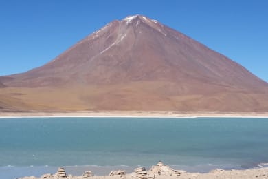 Pick up from San Pedro de Atacama hotel and transfer to Hito Cajon (border line Chile-Bolivia), transfer to start our tour: visit the Green Lagoon where we can see its impressive emerald color and the Licancabur Volcano, Hot Springs of Polques where we can enjoy nature and a refreshing and energetic bath in the middle of the desert, lunch on route, the Geysers (lava boiling intensely and steam which reaches up to 50 meters high), the Red Lagoon where the red of its waters is due to sediments from algae as well as zooplankton and phytoplankton which have the peculiarity of changing with the temperature, the Stone Tree (geomorphological formation from the mushroom rock type, due to the erosion caused by the wind. It outstands from a set of volcanic rocks).