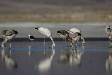 Breakfast at hotel. 06:00 visit Red Lagoon, Geyser, Hot springs of Polques and Green Lagoon. Transfer to Hito Cajon and then, transfer to San Pedro de Atacama. End of our services