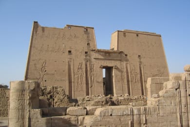 Breakfast on board Visit Edfu temple, it is one of the best-preserved shrines in Egypt. The temple was built in the Ptolemaic Kingdom between 237 and 57 BC. The inscriptions on its walls provide important information on language, myth, and religion during the Hellenistic period in Egypt, the Temple is nearly intact and a very good example of an ancient Egyptian temple. The Its archaeological significance and high state of preservation has made it a center for tourism in Egypt and a frequent stop for the many riverboats that cruise the Nile. Sail to Luxor Lunch on board Visit Karnak and Luxor temples Karnak temple cconstruction at the complex began during the reign of Senusret I in the Middle Kingdom (around 2000–1700 BC) and continued into the Ptolemaic period (305–30 BC), although most of the extant buildings date from the New Kingdom, the complex is a vast open site and includes the Karnak Open Air Museum. Luxor temple in the East bank it is a great temple complex in modern Luxor dedicated to Amun, a creator god often fused with the sun-god Ra into Amun-Ra, construction work on the temple began during the reign of Amenhotep III in the 14th century BC. Horemheb and Tutankhamun added columns, statues, and friezes, and Akhenaten had earlier obliterated his father's cartouches and installed a shrine to the Aten, However, the only major expansion effort took place under Ramses II some 100 years after the first stones were put in place