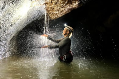 Get up early and have breakfast at the hotel. You will be picked up around 7:30-8:00 am and transferred to the meeting point. Here you will have a tour safety briefing, sign the release form, and receive the required equipment for the tour. And you are ready for your next adventure! The trek starts with a flat path past peanut fields and grazing buffalo and cows. The adventure accelerates with a 30 m climb up a rocky hill to a small jungle opening where you can catch your breath before a 100 m descent down to Hung Ton Valley. Cross the valley on a flat path to enjoying a picnic lunch at the entrance of Hung Ton Cave. Challenge yourself with more hills and jungle trekking before we walk down to Tu Lan Valley and your camp for the night. Finish off the day with a swim into Ken Cave. A delicious BBQ dinner will be prepared and served by the porter team. After dinner, you can enjoy the evening games before sleeping in your comfortable tent. Composting toilets are provided at camp. Overnight in Tu Lan. Please note: Due to the weather conditions the itinerary may need to be changed at short notice. The paths can be muddy and slippery after rain. Lifejackets must be worn when swimming in the caves.
