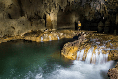 The second day starts with a hearty breakfast and more cave exploration. Trek and swim through Tu Lan Cave and Kim Cave to arrive at the magnificent To Mo Valley. Enjoy some snacks at the valley, then continue the journey by another swim through Hung Ton Cave. In Hung Ton Cave you will climb a 10-meter metal ladder with the extra protection of a safety line. Enjoy the beautiful views from the entrances into the jungle. A refreshing swim, dry passages, and amazing formations here will give you many opportunities for photos. After the third cave, we will head back to the starting point. Enjoy some snacks at To Mo Valley, and have lunch in the village when you arrive at Tan Hoa. Showers are available for those who would like to clean up and change and then depart back to Phong Nha. Overnight in Dong Hoi. Please note: Due to the weather conditions the itinerary may need to be changed at short notice. The paths can be muddy and slippery after rain. Lifejackets must be worn when swimming in the caves.