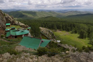 Drive to the splendid rocky formations of Khogno Khan. Discovery of the park : semidesert steppes, taiga, stunning rocky formations, 80-kilometre (49,71 miles) long sand dunes, are characteristic of this arid area nicknamed "Mini-Gobi". Walk until Erdene Khambiin Monastery. "Monk Erdene's Monastery" dates from 17th century and was built in the mountain. Zanabazar built it in honour of his teacher, monk Erdene.