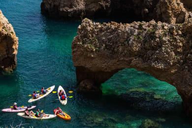 Transfer to the beach activity. Kayak or SUP tour. Visit the most beautiful caves of the Algarve, enjoy the golden coast and relax in an idyllic deserted beach only accessible by sea. During the stop there is the possibility to snorkel in the crystal clear waters. When the sea conditions allow, the guide (marine biologist) can capture different marine species, that are part of our diverse marine ecosystem, such as: octopus, crabs, cucumbers, stars, sea urchins and many others. Before being released it is possible to touch, photograph and learn some particular curiosities about these animals. Overnight in Algarve.