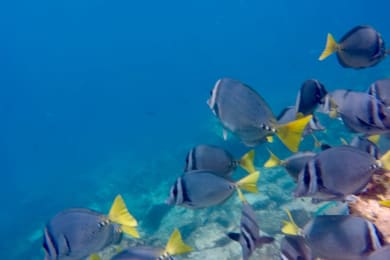 Today is an early rise for a day tour of Santa Fé Island. A boat voyage takes you to two remarkable snorkeling sites along Santa Fe's coast, perfect realms for playful encounters with Galapagos sea lions. Amidst these azure waters, a tapestry of reef fish weaves through your vision, occasionally accompanied by glimpses of graceful turtles, reef sharks, and rays. Touching land once more, you'll step onto the shores of 'Playa Escondida', an enchanting beach that invites relaxation.