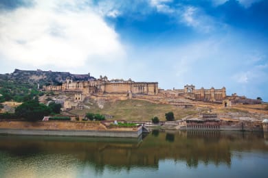 Explore the majestic Amber Fort and the Hawa Mahal (Palace of Winds) in Jaipur, the Pink City.