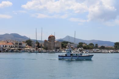 We will moor at the tiny fishing village of Perdika, perched on the idyllic eastern shores of Aegina Island, known for its temple of Athena Aphaia. Here you can indulge in some the Saronic Islands’ best seafood, as well as spend the afternoon swimming in the crystal-clear waters and wandering around the picture-perfect bay, before heading to the taverna-lined harbour for the last Greek island feast.