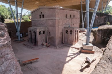 Today, you leave Lalibela and have a drive to Yimrhane Kristos for another ancient rock-hewn church known as Yimrhane Kristos. The drive to Yemrehanna will also give you the opportunity to view the rural countryside and villages of the Ethiopian highlands. Visit Yemrehanna Kristos, which is one of Ethiopia’s best-preserved late-Aksumite buildings, few people reward themselves with a visit. And a reward it is. The church is different because it’s built rather than excavated. Seeing the stepped exterior facade, created from alternating wood and stone layers, you’ll understand why so many of Lalibela rock-hewn churches look like they do. And knowing that Yemrehanna Kristos may predate Lalibela’s churches by up to 80 years, you have before you a virtual blueprint of greatness. Afternoon, drive back to Lalibela for lunch and you will proceed to visit the remaining groups of the church. Finally, you will visit the most famous of all the churches – Bet Giyorgis, constructed in honor of the patron saint of Ethiopia – Saint George.