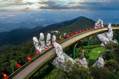 Have breakfast at hotel. Morning transfer to Ba Na hills and take Cable Car which gains 5 world scores to Ba Na hills station. Stop at By Night station to visit Vong Nguyet hills, Linh Ung pagoda, The Old Villas of French. Enjoy games at Fantasy Park – the third biggest indoor games zone in Vietnam with series of interesting games. Buffet lunch at a local restaurant. Go down by cable car and visit the Nui Chua Mountain – the top of Ba Na range, visiting Golden Bridge, held up by two enormous stone-colored hands. The bridge opened in June 2018, is 150 meters long and 1,400 meters above sea level, with views across the green mountainscape. Continue visit Nginh Phong top, Le Nim Villas, Orchid Garden… Go downhill also by cable car then transfer back to Hoian, the rest of the day is at leisure. Overnight in Hoian. Please note: Wax Museum entrance fee, wine tasting cost and coin games at Fantasy Park are not included, joining them will be at your own account.