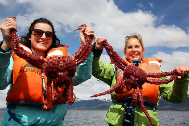 Full day excursion with picnic lunch Lagos Off Road in 4 x 4. After breakfast, with the first rays of morning sun, we will venture into a full day Safari, Defender vehicles (4x4) with lunch included. The crossing will allow us to connect in a different way with the most recondite landscapes of the island of Tierra del Fuego. Along dirt paths and bypassing streams, we will reach the imposing coast of Lake Fagnano, where we can take a moment to contemplate this extraordinary place and its particular energy. From there, vehicles will begin to travel difficult roads (off-road) offering views of unparalleled beauty. Then we will start a trek through the forest to the Escondido Lake, where there is a mountain refuge. When crossing the coast we will observe the community of beavers, their constructions and reservoirs, creating a habitat to house their family. In this wonderful environment, we will enjoy a barbecue in the best Argentine style, accompanied with Malbec wine, and the opportunity to relax, share talks and replenish energy. After lunch, whoever wants it, will be able to navigate, in canoe, the calm waters of the Escondido Lake and explore the amazing landscape. Optional to replace the excursion with "EXPERIENCIA PESCA DE CENTOLLA": An unforgettable day in a picturesque village by the sea. You will feel part of the people sailing, fishing your own spider crab and cooking it in a family house, learning the culinary secrets to prepare it in the Patagonian style.